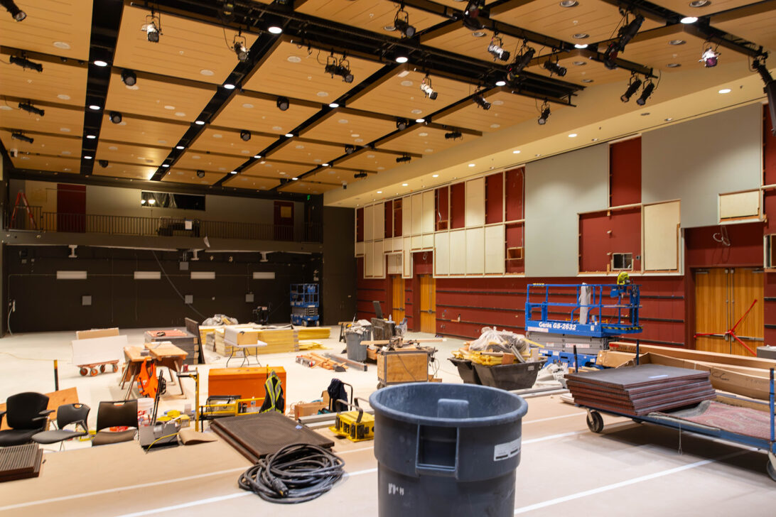 Thanks to a generous legacy gift from the estate of Maurice Kanbar (z”l), we’re transforming Kanbar Hall into a state-of-the-art venue. Maurice’s gifts across his lifetime and beyond total an extraordinary $8 million in support of the JCCSF. Through his transformative generosity, we’re thrilled to see the space evolving. Recent work in December has focused on a full acoustical analysis of the space along with the installation of acoustic wall panels, accompanied by the lively soundtrack of hammers and drills. Our brand-new giant projection screen has arrived, and the Dolby Atmos speakers are here! It’s so exciting that our audio-visual partners have moved in to begin installing the technology – the transformation is truly taking shape.